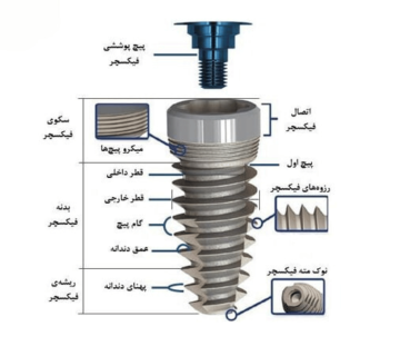یکی از مطمئنترین روشهایی که میتوان برای جایگزین کردن جای خالی دندان استفاده نمود، کاشت ایمپلنت میباشد . ایمپلنت، مجموع قطعاتی است که با جراحی، در داخل فک ثابت گردیده و بر روی آن، تاج (روکش دندان مصنوعی) قرار میگیرد تا در نهایت ظاهری مشابه با دندان طبیعی پیدا نماید. جایگزینی ایمپلنت دندان، شامل بخشهای مختلفی میباشد که در ادامه بیشتر توضیح داده خواهد شد. قرار دادن ایمپلنت در فک، پس از اتمام جراحی، شامل چهار جزء: پایه ایمپلنت (فیکسچر)، اباتمنت، پیچ اباتمنت و تاج میباشد. در شکل( 8-1 ) اجزای قرار گرفته سیستم ایمپلنت در لثه بیمار، پس از پایان اتمام جراحی ایمپلنت به صورت شماتیک مجزا و ترکیب شده درون لثه، نشان داده شده است.